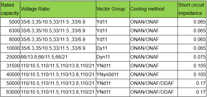 Rated capacity: 10MVA-63MVA